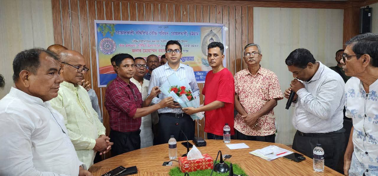 বোয়ালখালীতে আসন্ন শুভ প্রবারণা পূর্ণিমা উপলক্ষে বৌদ্ধ ধর্মাবলম্বীদের সাথে উপজেলা নির্বাহী অফিসার (ইউএনও) মোহাম্মদ রহমত উল্লাহ’র সাথে শুভেচ্ছা বিনিময় ও সম্মাননা প্রদান অনুষ্ঠিত হয়েছে।
